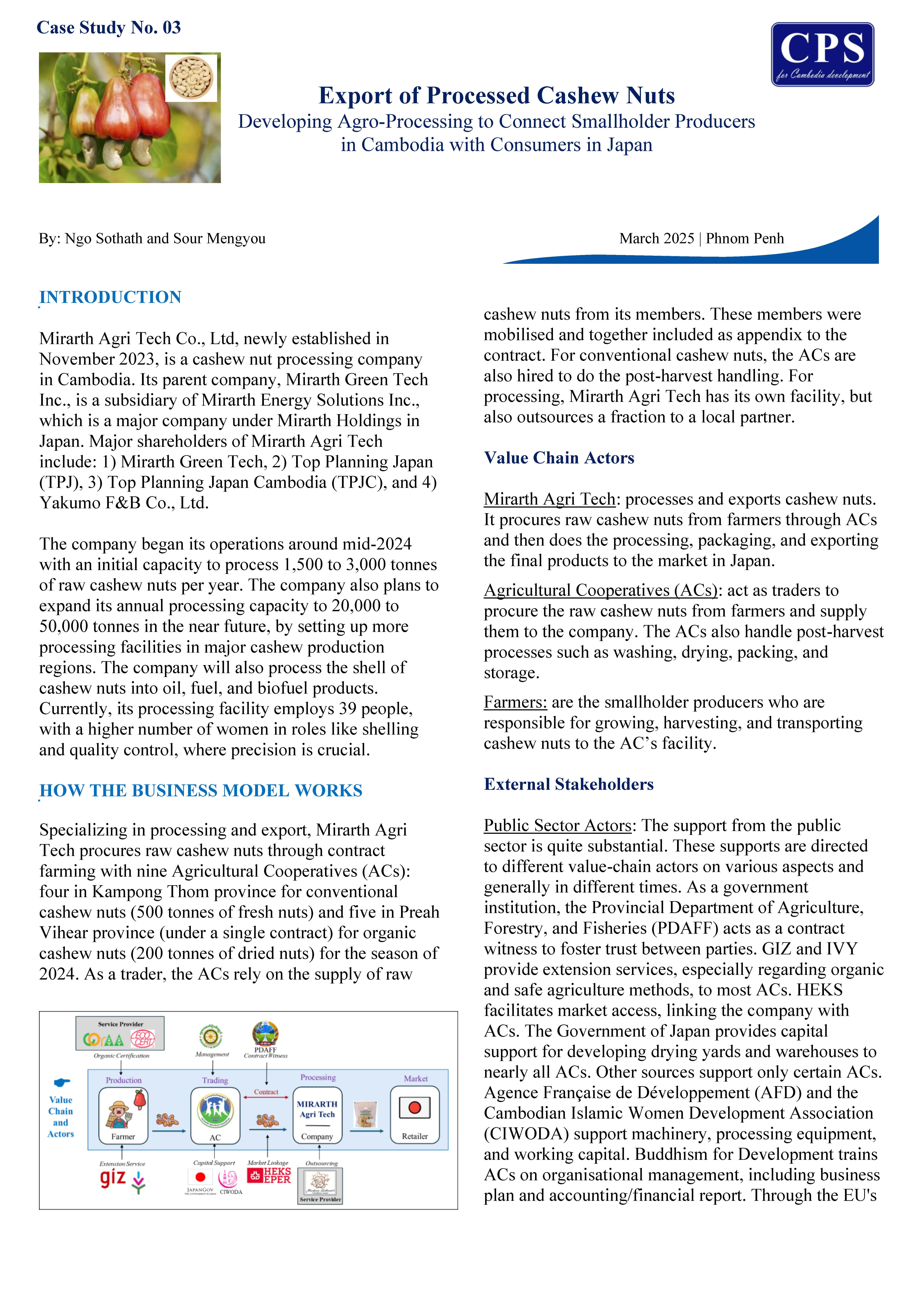 Export of Processed Cashew Nuts - Developing Agro-Processing to Connect Smallholder Producers in Cambodia with Consumers in Japan