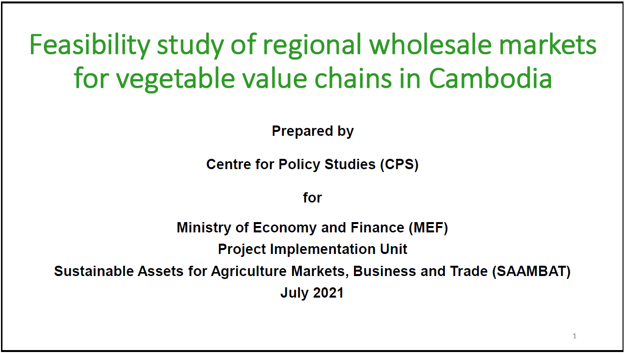 Feasibility study of regional wholesale markets for vegetable value chains in Cambodia