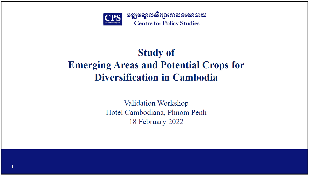 Study of Emerging Areas and Potential Crops for Diversification in Cambodia